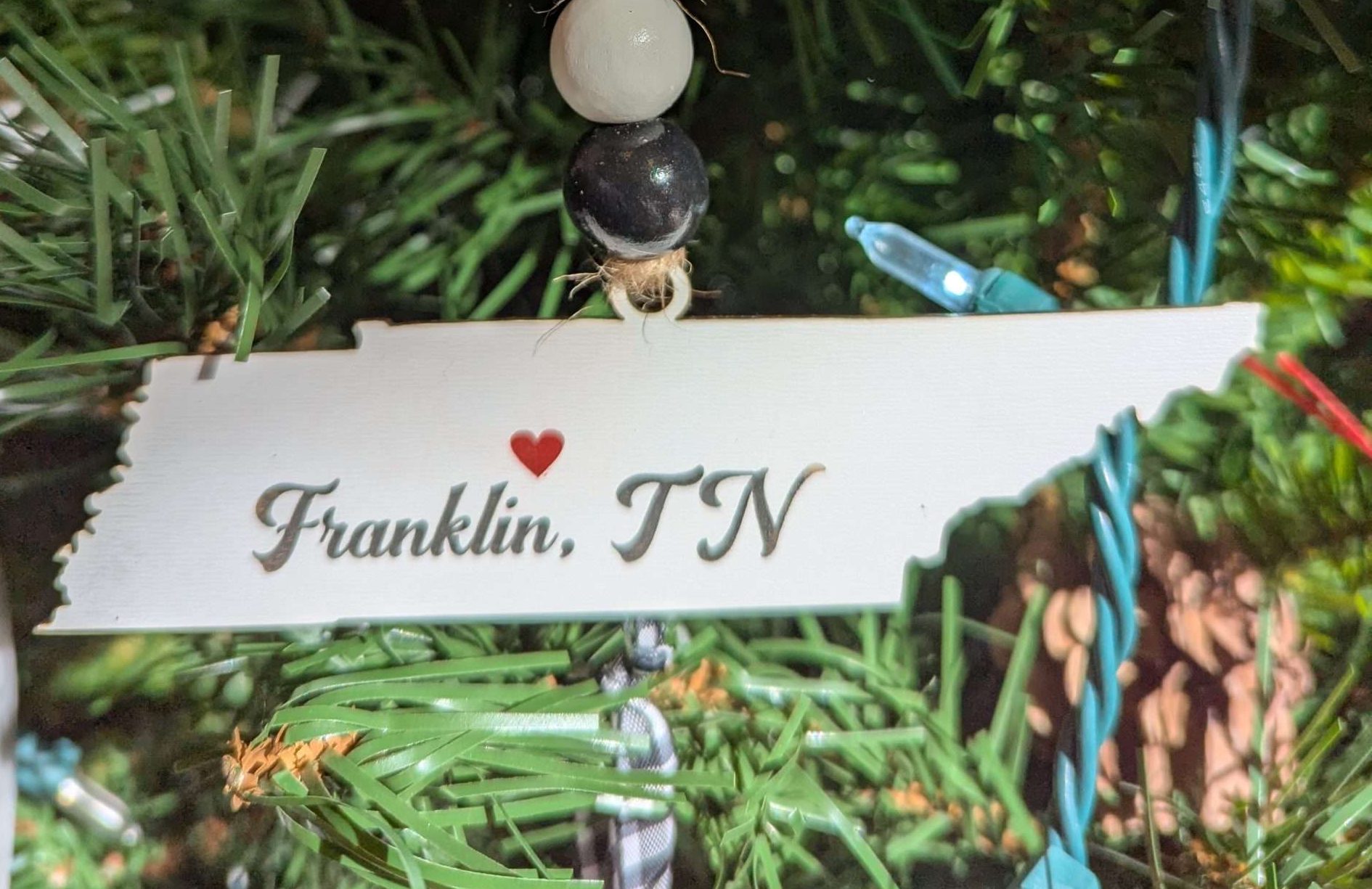 Laser engraved ornament to show your love for Franklin, TN