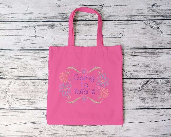 Perfect tote to add your valuable treasures when heading to Yaya’s. Sturdy cotton canvas bag with 22″ fabric handles.