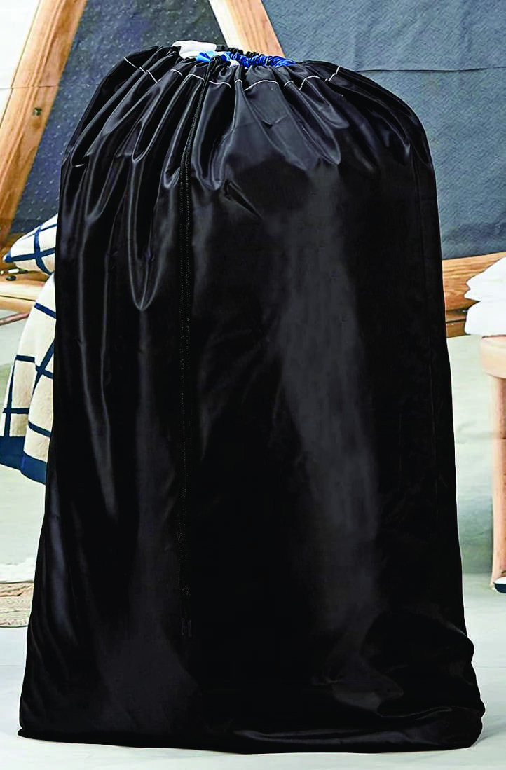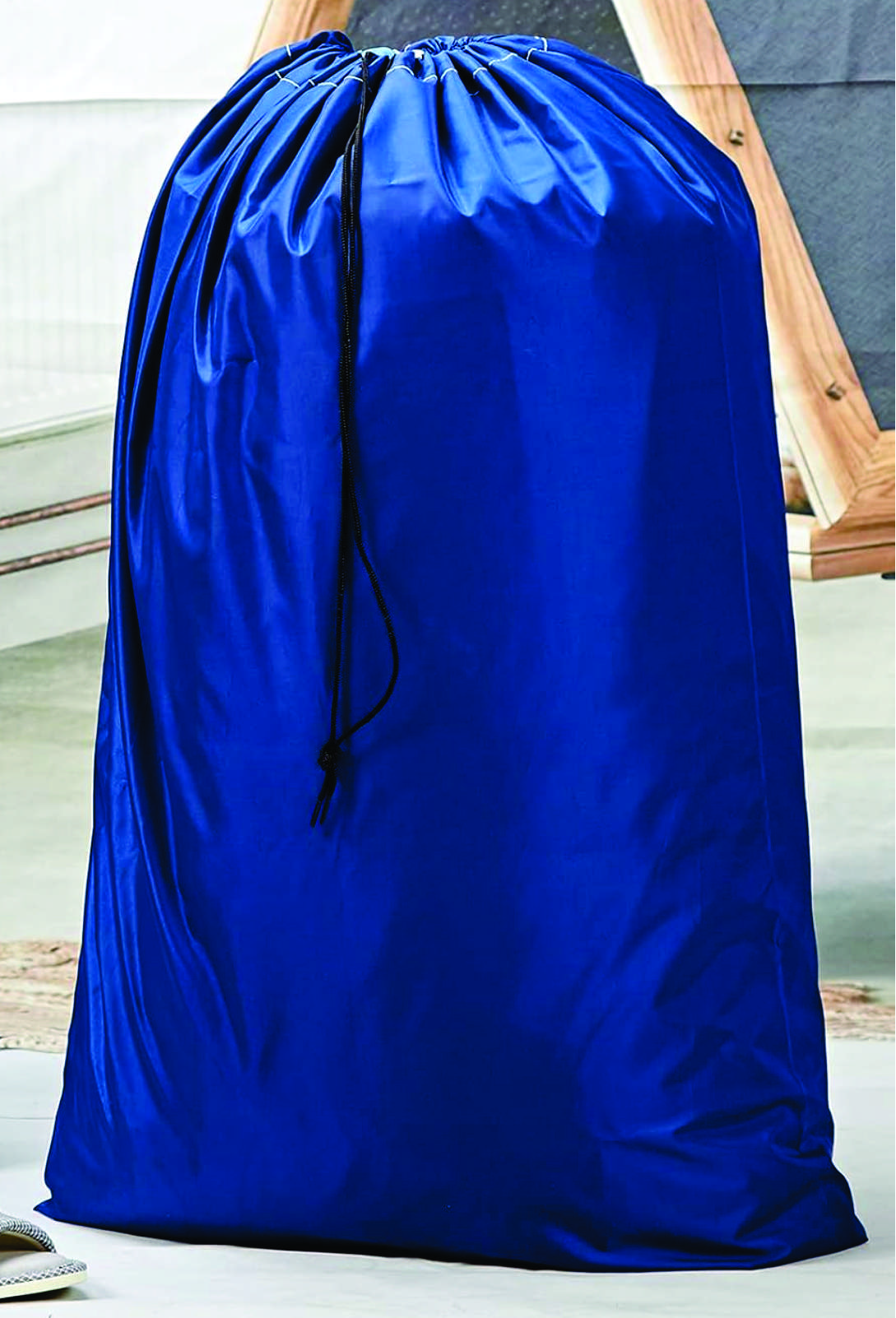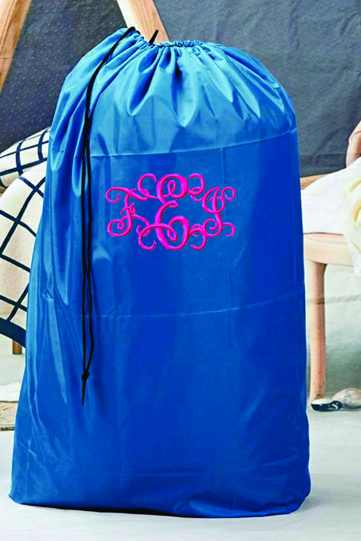 Extra large drawstring bag perfect for travel, laundry or  storage. This  sturdy bag has double seam construction and is made from thick nylon material.  The size is big enough for holding 3-4 loads of laundry making it ideal for use in college dorms or family travel.  Add a monogram to make a nice personalized gift for a college bound student or new homeowner. Perfect for storing blankets, sleeping bag or even use it to hold a large gift!